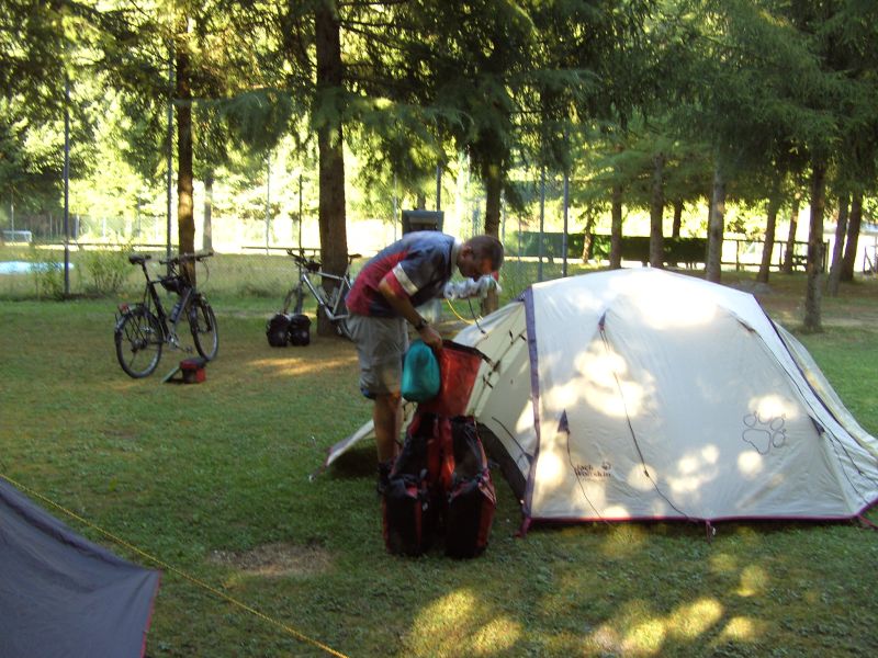 Natur-Campingplatz bei Grondola: außer uns standen noch zwei weitere Zelte