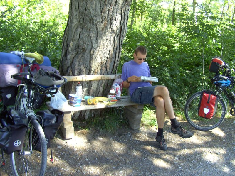 Mittagspause kurz hinter Chur, direkt am Rhein