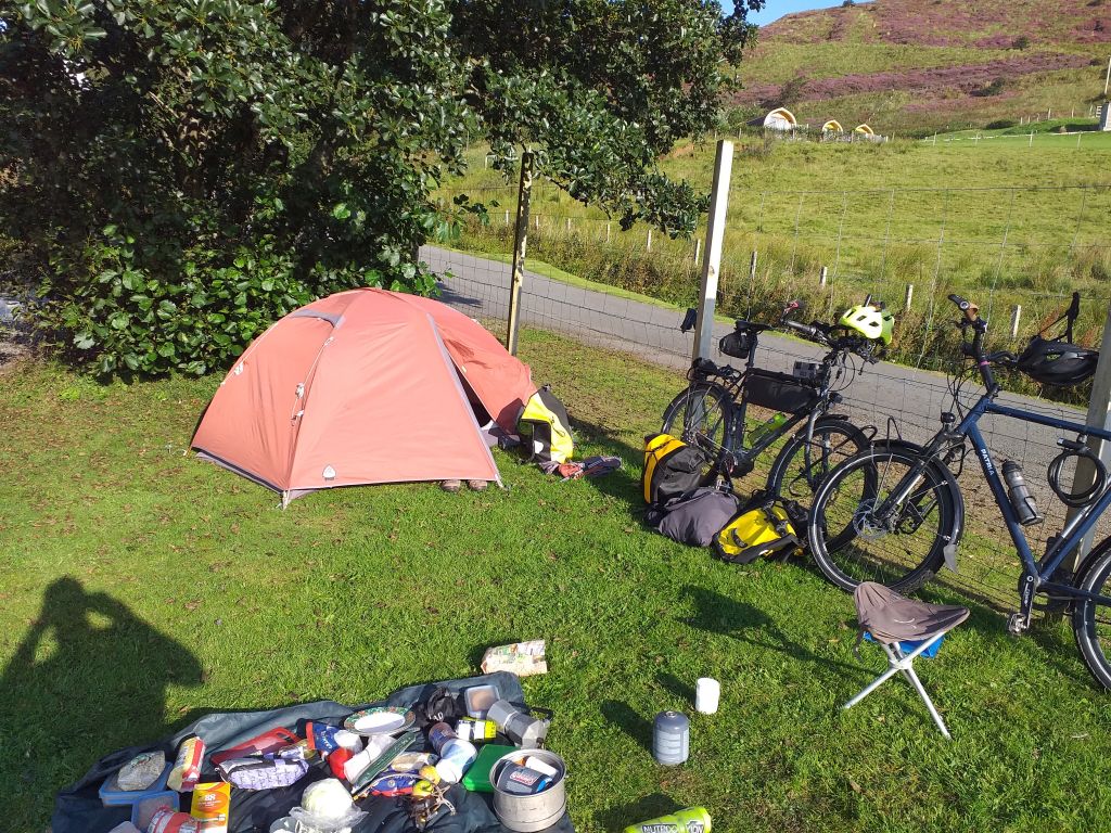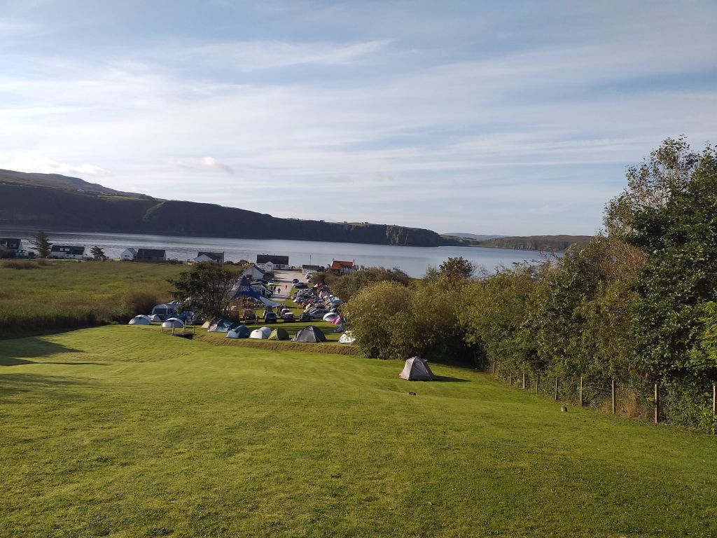 Campingplatz von Uig: Unten befindet sich eine französische Gruppe von Oldtimern