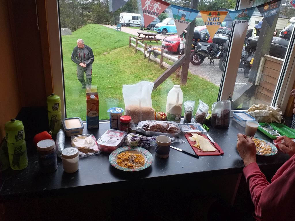 Frühstück in der Küche des Campingplatzes in Stornoway